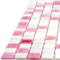 Glam it up with this cute pink and white tile! The pink and white mixed squares glass tile is stunning to use for inside or outside use, you can doll up any space where a touch of the unexpected is desired. For example, missing something in a bar area? Make it glamorous with Pink & White Mixed Squares glass tile! This color tile can be used in wet areas so submerging it in water is not a problem. It can be used for any area a kitchen backsplash tile, shower tile, pool tile, and even in steam rooms or spa areas! Not only is it pretty but impressively durable and no ongoing maintenance is required. It is easy to look at as it is easy to care for!