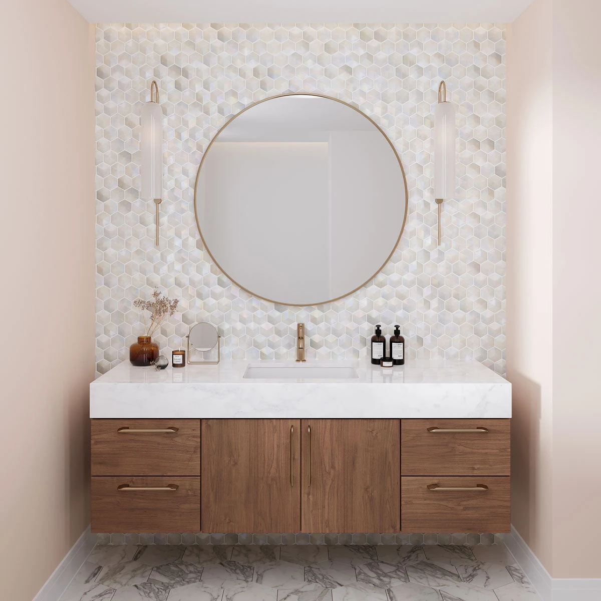 Step out of the box and allow this charming pearl white hexagon mosaic take your interior design to the next level!