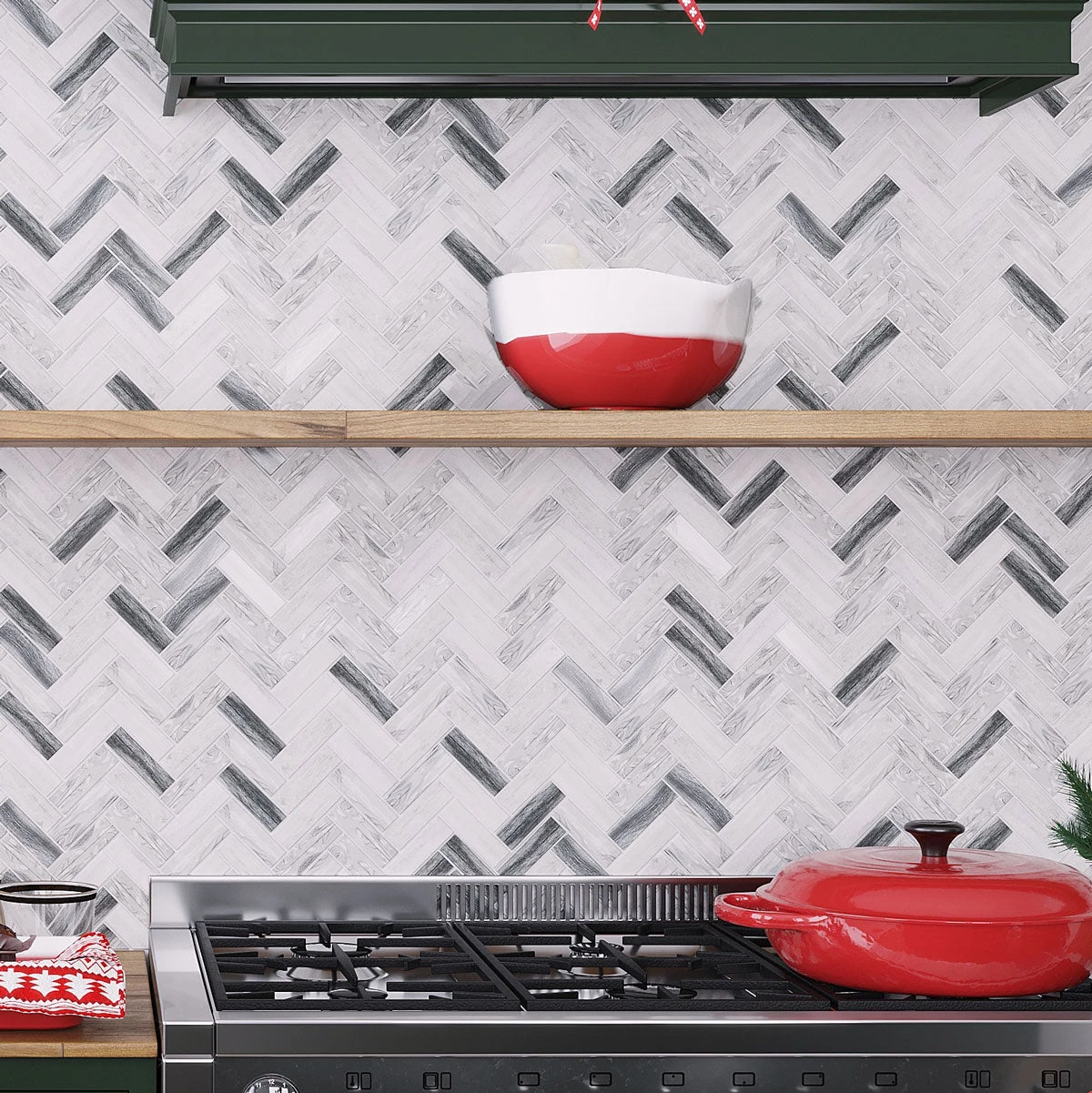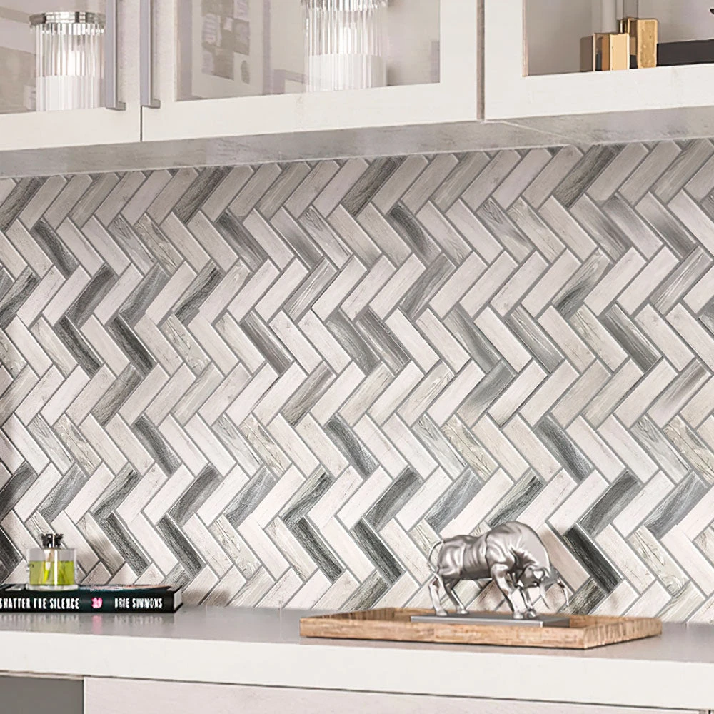Love how recycled glass herringbone mosaic tiles in grey wood color could make your space look? These lovely mosaic tiles are ideal for adding a unique touch to any room. Interior designers, architects, builders, and homeowners all use them frequently in design projects because of their neutral color palette and traditional design.