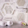 | Sold by: Sheet Sheet Size: 11.5″ x 11.5″ Chip Size: 2.75 x 5.7″/70 x 145 mm Thickness: 15/64″ Material: Recycled Glass Color: White, Beige, Gray Finish: Matte Mounting type: Mesh Mounted Recommended Adhesive: Laticrete Glass Tile Adhesive Lite | Area of use: