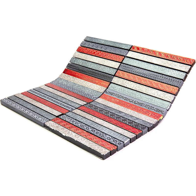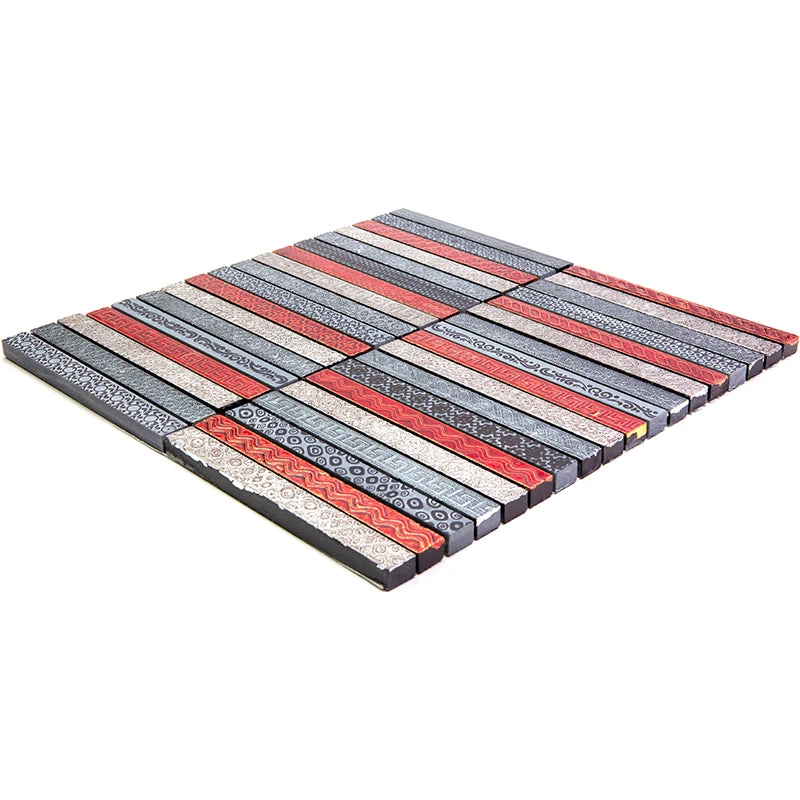 If you like bright solutions for your home design, this linear tile will become a stunning addition to any of your indoor projects. Vivid red, black, and gray mosaic pieces of natural marble deliver a dynamic, dramatic appeal, that will enhance any modern look. Not for timid, this etched tile with various patterns creates a strong focal point for any interior, including living rooms, bedrooms, kitchens, bathrooms, hallways, and foyers. This is a great marble accent for your walls, that will last longer and will not need any special treatment. Each 12×12’’ square tile sheet arrives on a mesh mount for an easy installation. Use this astonishing product for your walls to create a bright red backsplash, a fabulous shower design, a striking niche, or a decorative border.
