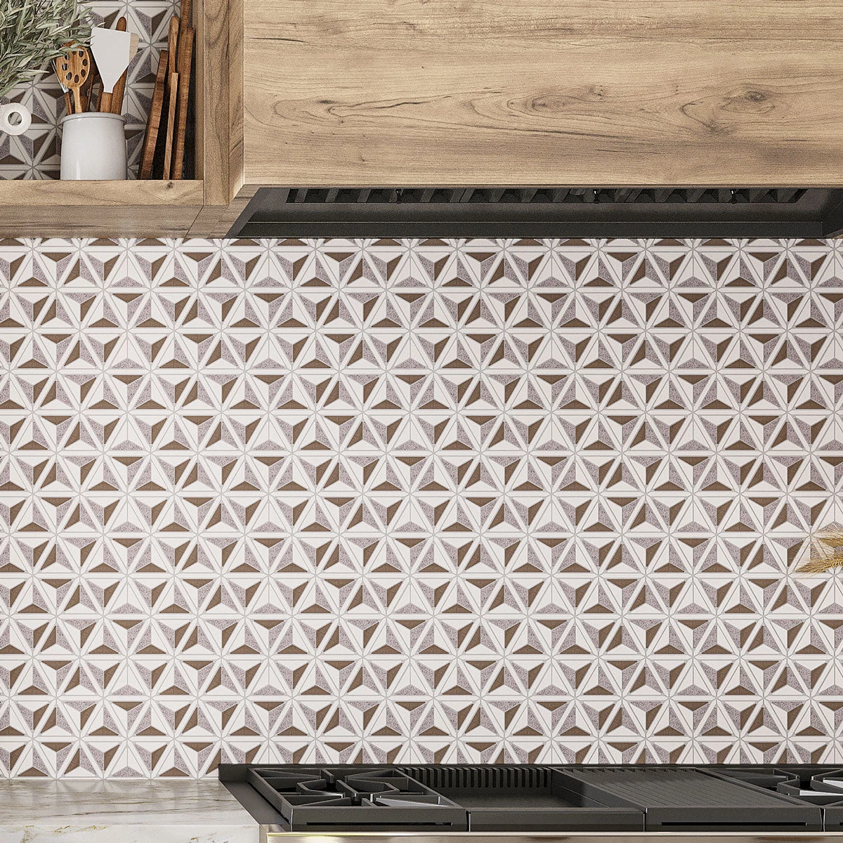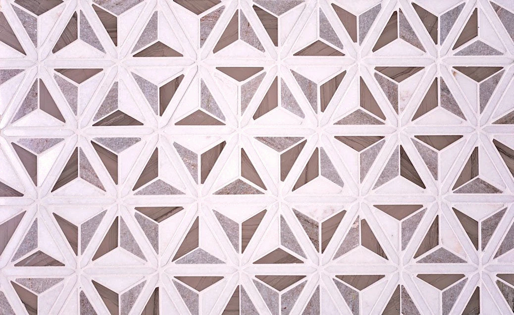 Express your personality by using this playful kaleidoscope pattern on your walls and floors. Mosaic tile with a kaleidoscope pattern pays tribute to the nostalgia of postmodern design and gives a bold and graphic impact to any space. White hues of the Thassos White tiles are combined with different shades of Athens Gray and Crystal Sand marble, creating this amazing pattern that will add vibrancy and charm to your home. The distinct pattern of these mosaic tiles allows you to create a focal point that will inject a space-defining allure into any setting. Bring your vision to life and use this charming kaleidoscope pattern tile in any spot in your home. Due to the nature of stone, variations in color, pattern and veining may occur.