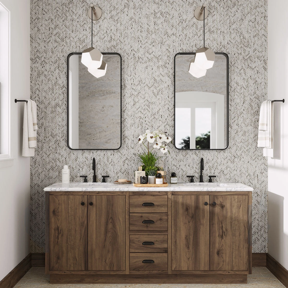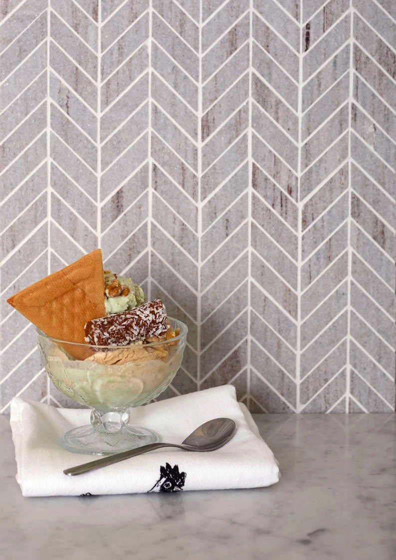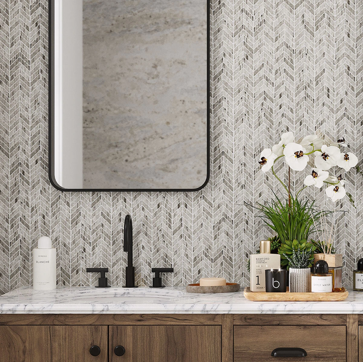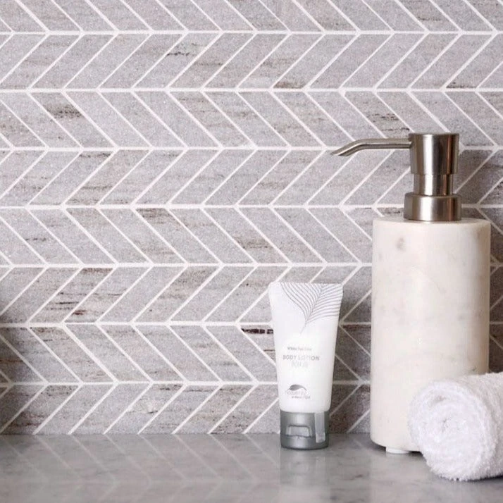 Update your décor with timeless gray marble tiles designed in an attractive herringbone pattern. This mosaic tile is a gorgeous element for any design theme combining the beauty of natural stone with Crystal Sand marble*. This classic yet stunning herringbone pattern creates a movement on any surface where it’s applied. Herringbone marble tiles give you a great opportunity to mix things up while keeping the traditional feel with a natural stone tile. Whether it is your kitchen backsplash, shower walls, or any other space, these mosaic tiles fit anywhere where the distinctive pattern is desired.