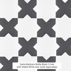This product contains the Santa Barbara Matte Black Cross style ONLY. Star and Cross designs are sold separately. Pair with the matching Matte Black Star, Decorative Black Cross, or any other Santa Barbara star and cross tiles to create the custom tile design of your choice!