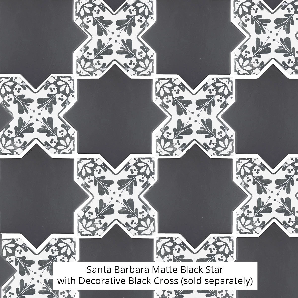 ONLY. Star and Cross designs are sold separately. Pair with the matching Matte Black Cross, Decorative Black Cross, or any other Santa Barbara star and cross tiles to create the custom tile design of your choice!