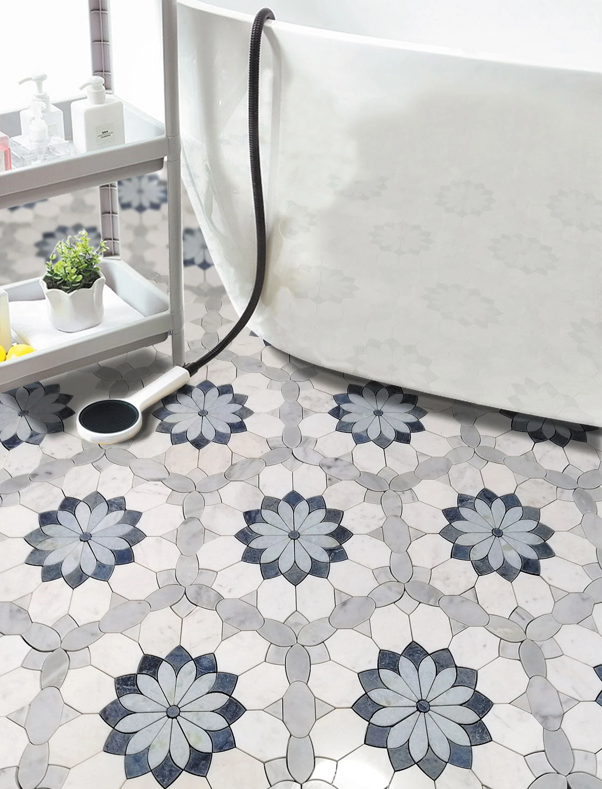 Luxurious natural stone is perfect to add a high-end appeal to your commercial or residential spaces. Our flower marble mosaic tile is the perfect backdrop for showers where you’ll end up with a truly unique space!