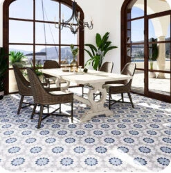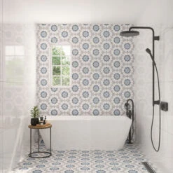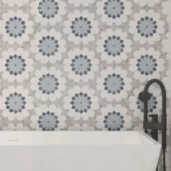 Allow the energy of beauty and grace of these blue and white floral tiles to energize your space!