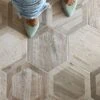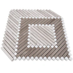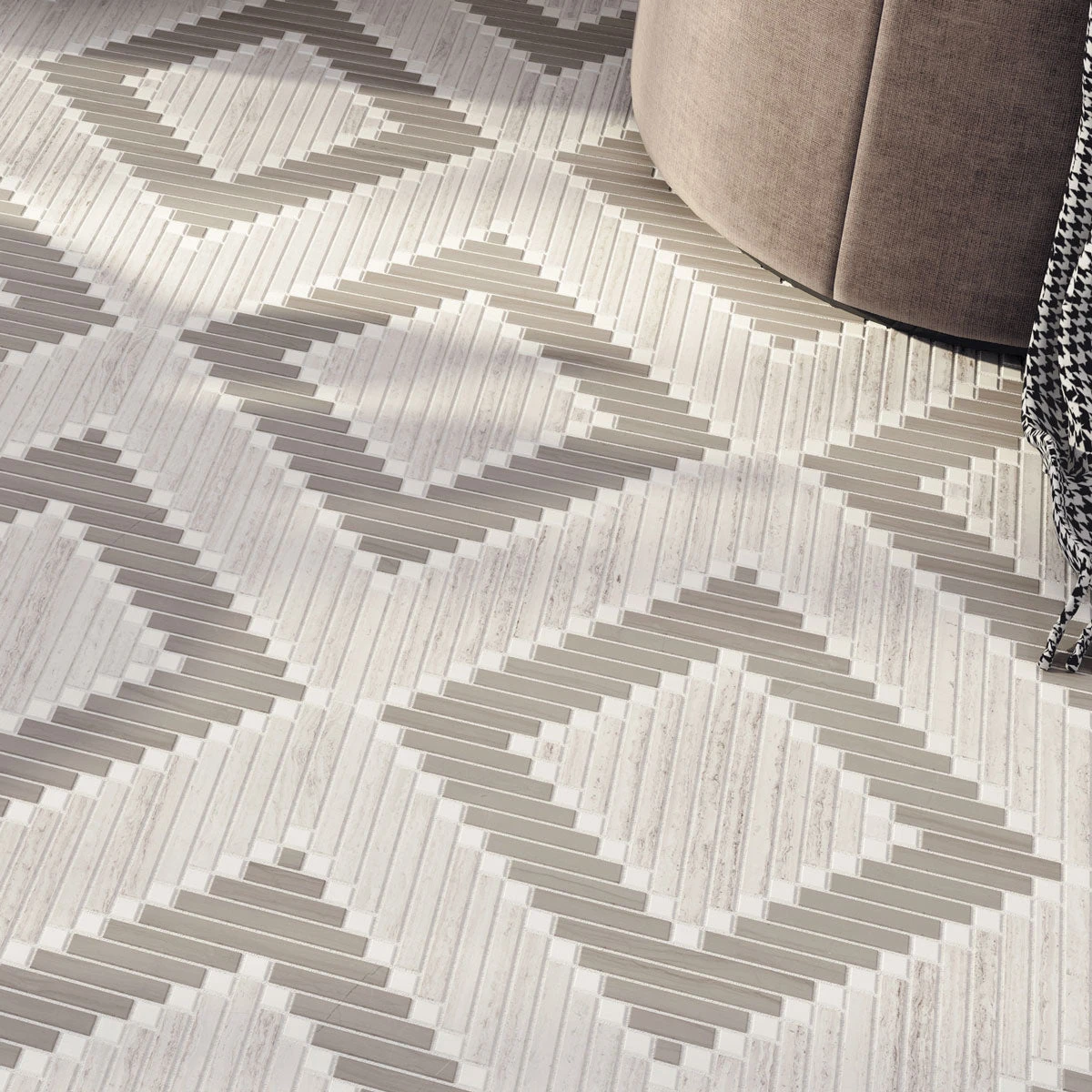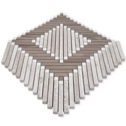 This tile is an invitation to dream and design a sophisticated space. Cool and elegant with an unexpected wood-look surface, it makes a refreshing and stylish addition to any setting. Transform your floors with this geometric mosaic tile. Mixing the classic feel of marble with the warmth of wood is a great way to create an inviting interior that feels chic and welcoming!