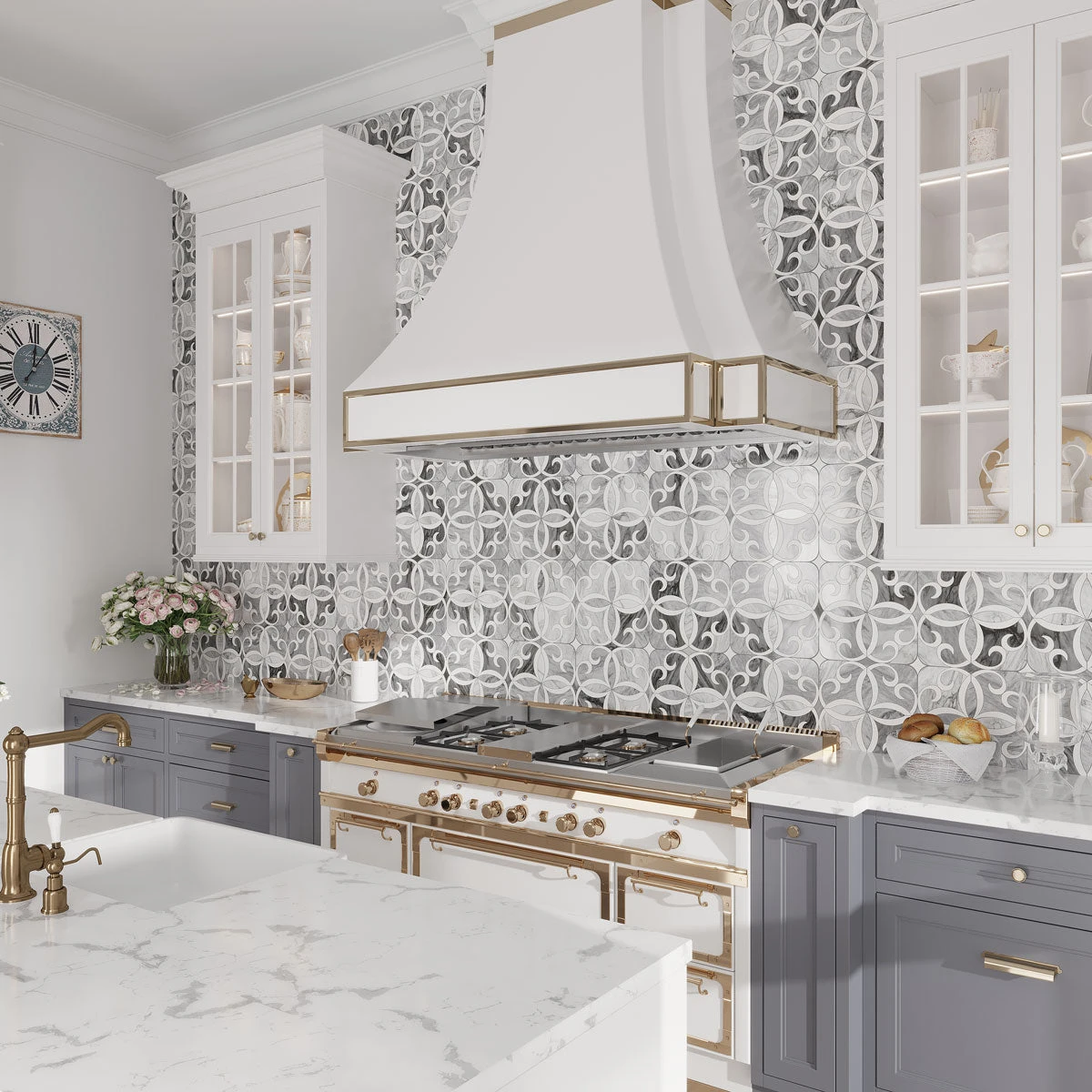 | Sold by: Sheet Sheet Size: 12.2″ x 12.2″ Material: Calacatta Bluette, Thassos White