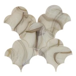 High-quality glass tiles transform your home into a magnificent space. These hand-poured Sea glass tile mosaics will create lovely silhouettes in your home with a cloud-like effect in moody yet very calming white and brown colors. The curvy cloud-like shapes bring the beauty of endless, deep skies to your home. You can enhance the walls of a bathroom or kitchen with these unique glass tiles that are water-resistant and feature a long-lasting color. Low maintenance and easy to clean glass make these mosaic tiles an ideal choice for especially the bathroom and kitchen backsplash areas. Amber tile with a neutral color can also complement any décor from rustic to contemporary. You can keep your space airy and light using sea glass tiles with lighter tones to visually alter the size of a small room. This cloud tile is not only suitable for bathroom and kitchen backsplash but is also great for a multitude of other interior applications, such as accent walls and fireplace surrounds.