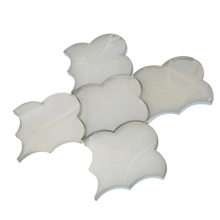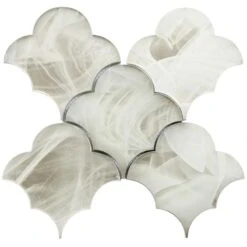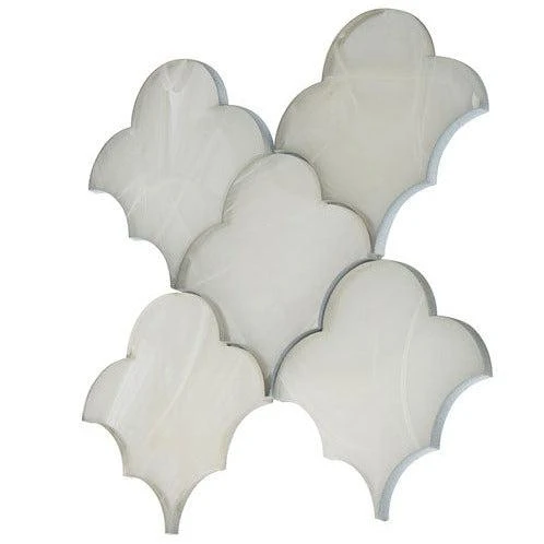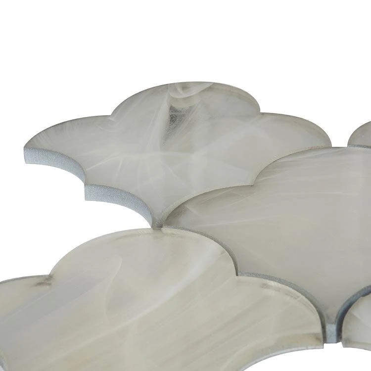 High quality Sea glass tiles transform your home into a magnificent space. These hand-poured glass mosaics will create lovely silhouettes in your home with a cloud-like effect in moody yet very calming white and gray tones. The curvy cloud-like shapes bring the beauty of endless, deep skies to your home.