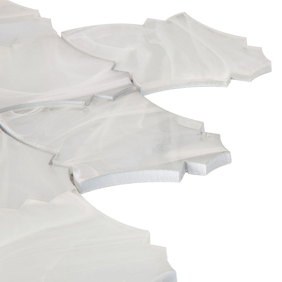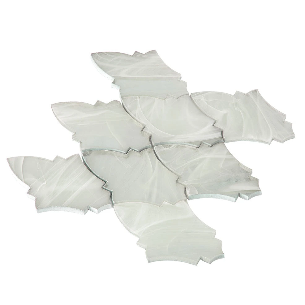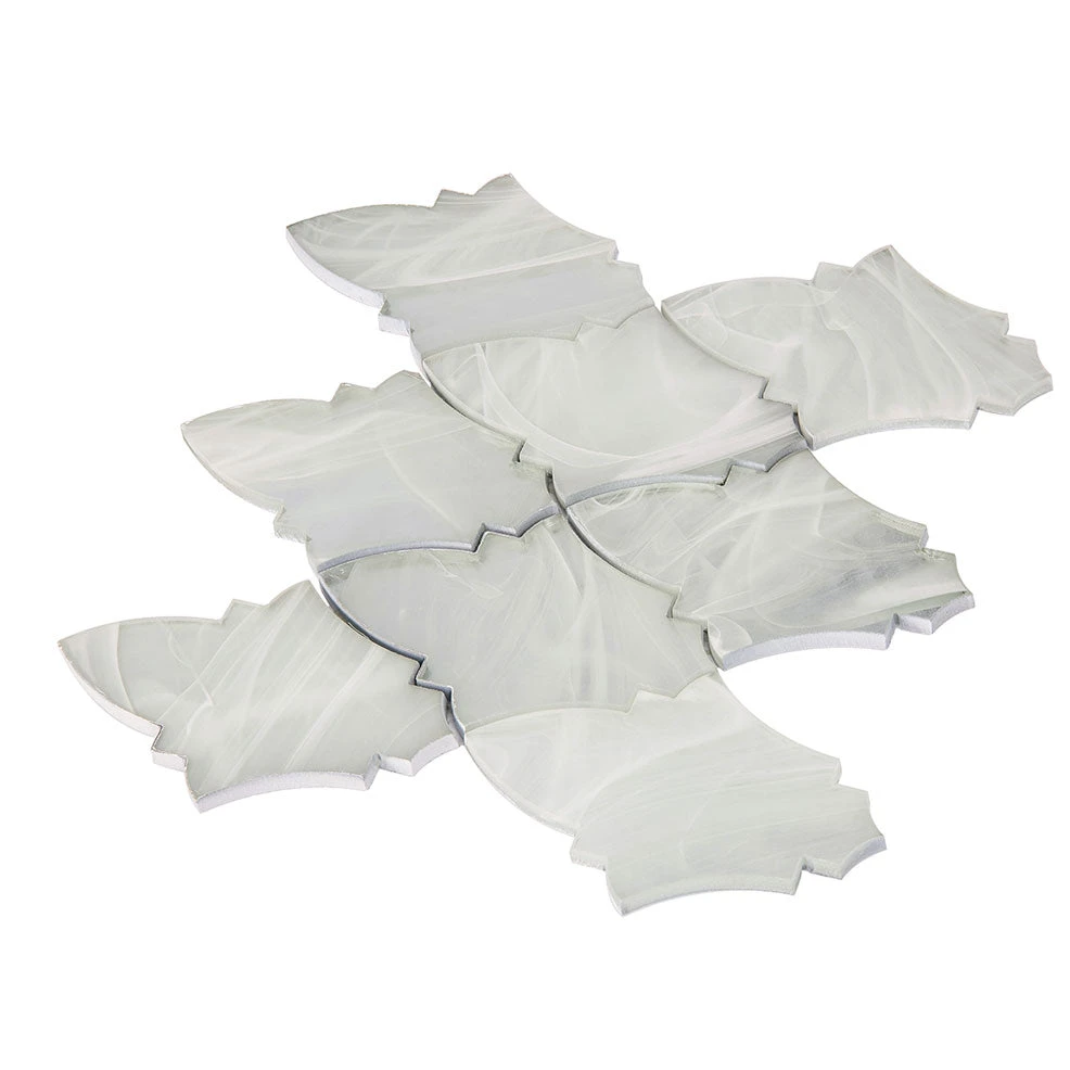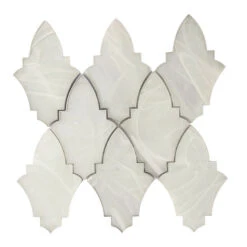 While its shape is a classic design, these glass tiles can easily fit into a modern aesthetic when combined with the right elements. White and gray mix mosaic tile can complement almost any color scheme and the bright tone of these luxurious arabesque tiles can help brighten moody and dark spaces. The curvy feminine pattern of this glass tile will bring a warm and welcoming atmosphere into your space. This piece is great for use especially on walls in bedrooms, bathrooms, kitchen backsplash areas or other accent walls.