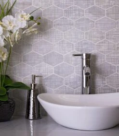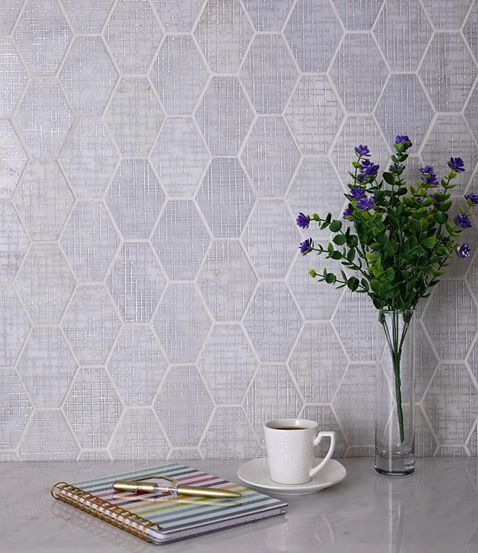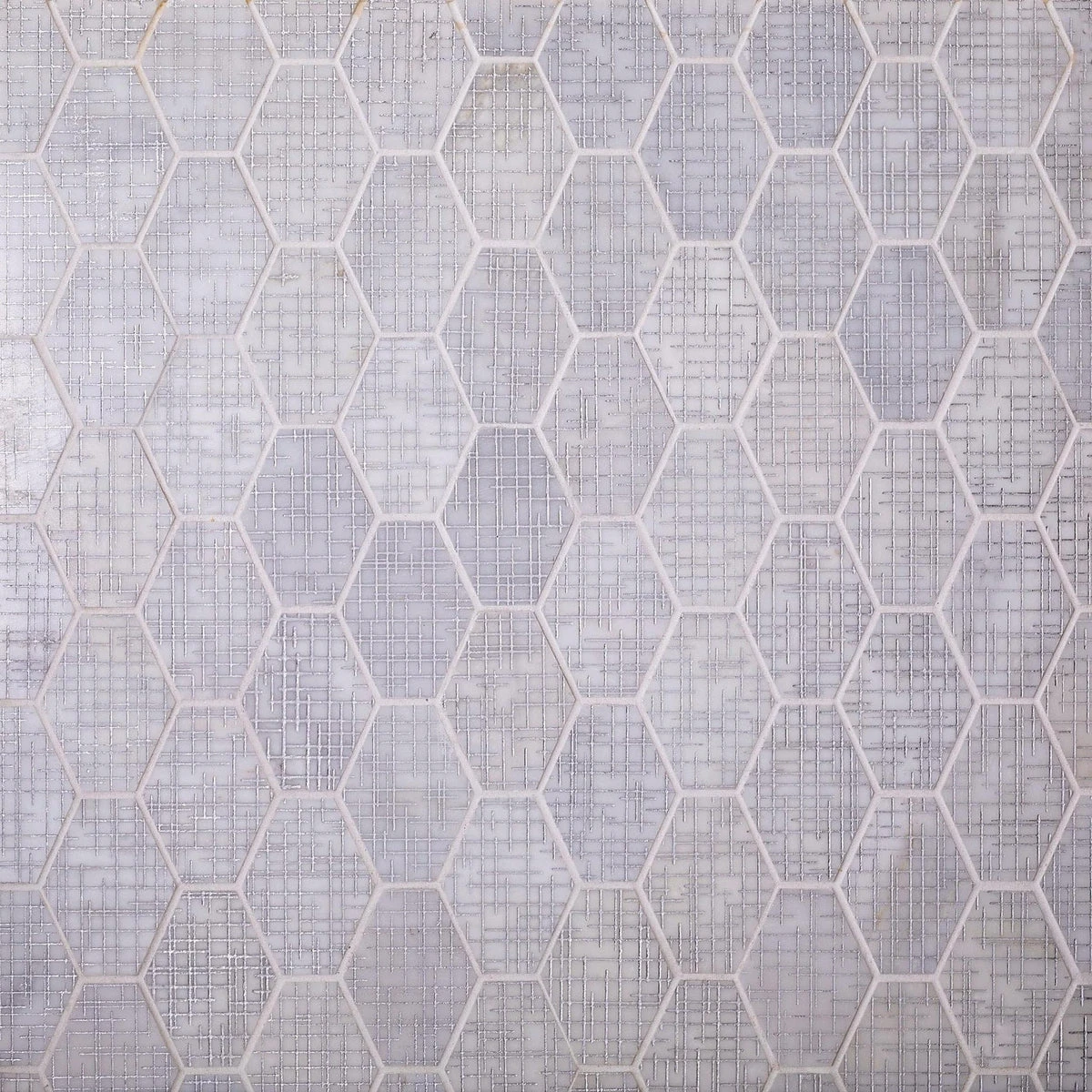 Bring a luxury of natural stone to your home design with our Silver Etched White Elongated Hexagon Mosaic. Our take on a timeless pattern opens a modern look on a classic style and easily fits into contemporary design projects. A grey mosaic color features recent trends and sets up a neutral, comforting feel. This hex marble mosaic attracts with its detailed appeal and creates a unique focal point. Made of a high-quality natural stone it is long-lasting and easy to maintain, which makes it a popular choice for many design ideas. It is a great product for residential floors, general walls, shower walls, a kitchen backsplash, or an opulent accent piece. Use this white elongated hexagon tile for your kitchen, bathroom, hallway, entrance, or any other indoor space.