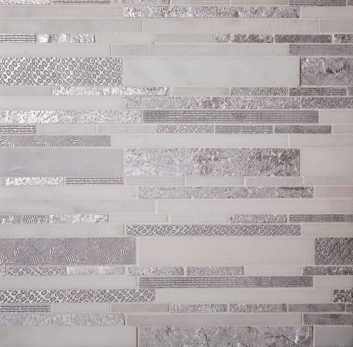 A charming combination of simple forms and shiny silver tile color of our Silver White Matchstix Marble Mosaic glam up your home and bring a sleek fresh feel. Unique patterns of this geometric tile create a focal point for your space and deliver a catchy detailed look. This natural stone marble tile does not need a special treatment, it is durable and long-lasting. You can use it for various projects to cover your walls. It makes dazzling accents such as niches, feature walls, and statement stripes. Beyond that, it is an approved floor tile for light traffic areas. Add a glossy silver marble tile backsplash to your kitchen, decorate your bathroom, hallway, dining area, and any other room in your house.