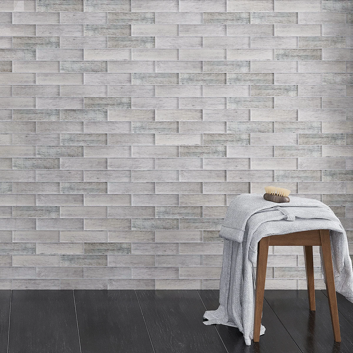 This captivating glass tile features a popular subway pattern and a trendy wood imitating design ready to accentuate any home. A polished mosaic finish adds a glossy flair and delivers an opulent appeal. Shades of silver and gray create a natural, cozy mood and warm up the surrounds. Each sheet is attached to a mesh-mount backing to provide you with an easy and fast installation. Resistance to stains and mildew, low maintenance, and durability of glass mosaics make them extremely popular for numerous designs. This product is approved for indoor applications only. These subway mosaics are great for kitchens and dining rooms, bathrooms and steam rooms, living rooms, or other areas in the house. You can cover the walls, make a wood looking tile flooring in light traffic areas, decorate a shower pan, or install a marvelous backsplash.