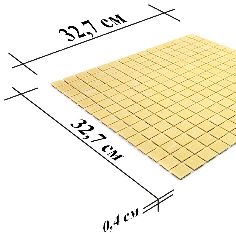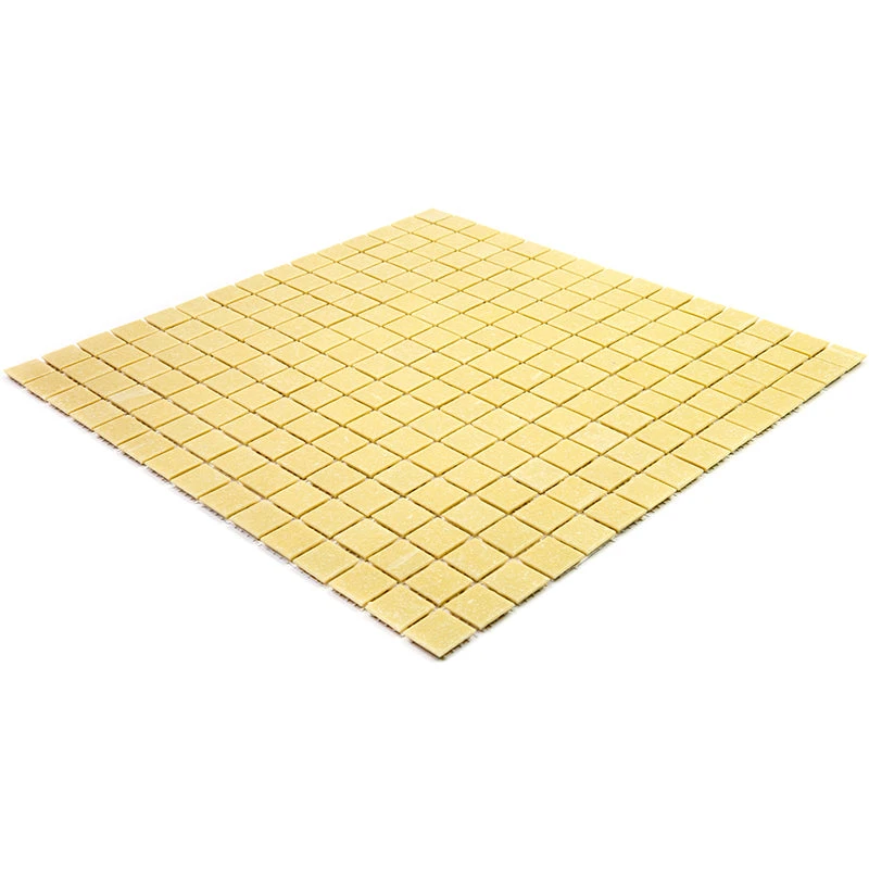 | Sold by: Sheet Sheet Size: 12” x 12″ Thickness: 1/4″ Chip size: 20 x 20 mm Mounting: Paper Facing Material: Glass Color: Yellow Recommended Adhesive: Laticrete Glass Tile Adhesive Lite Packing info: