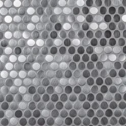 The timeless pattern of round penny tiles meets modern metallic with this Stainless Steel Metal Penny Tile Mosaic. This polished round tile offers a silver shine for a modern kitchen or a gleaming shower wall. The shine of this stainless steel penny round tile is ideal for an industrial interior finish, making a perfect wall treatment for your laundry room or a modern bathroom! If you’re a fan of futuristic design, you’ll appreciate the lure of a stainless steel metal penny tile for a modern touch.