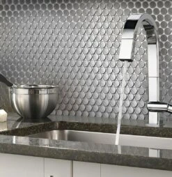 The rounds are mounted on mosaic sheets to make installation and tile setting quick and easy so you can have your ultra-modern and cutting-edge kitchen or bathroom ready in a short period of time. Not to mention this stainless steel penny tile is relentlessly durable so you can enjoy it for many years to come.