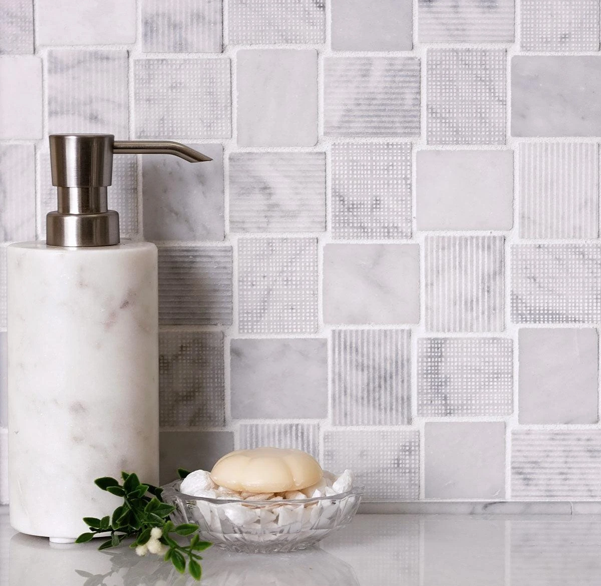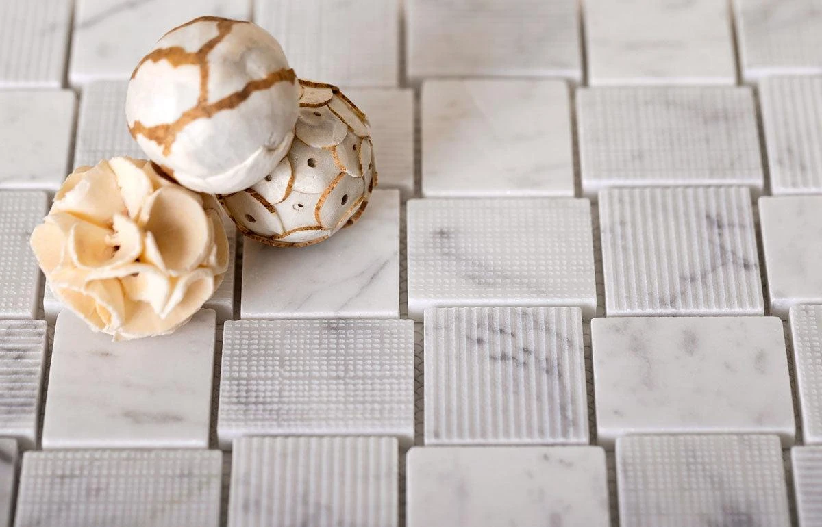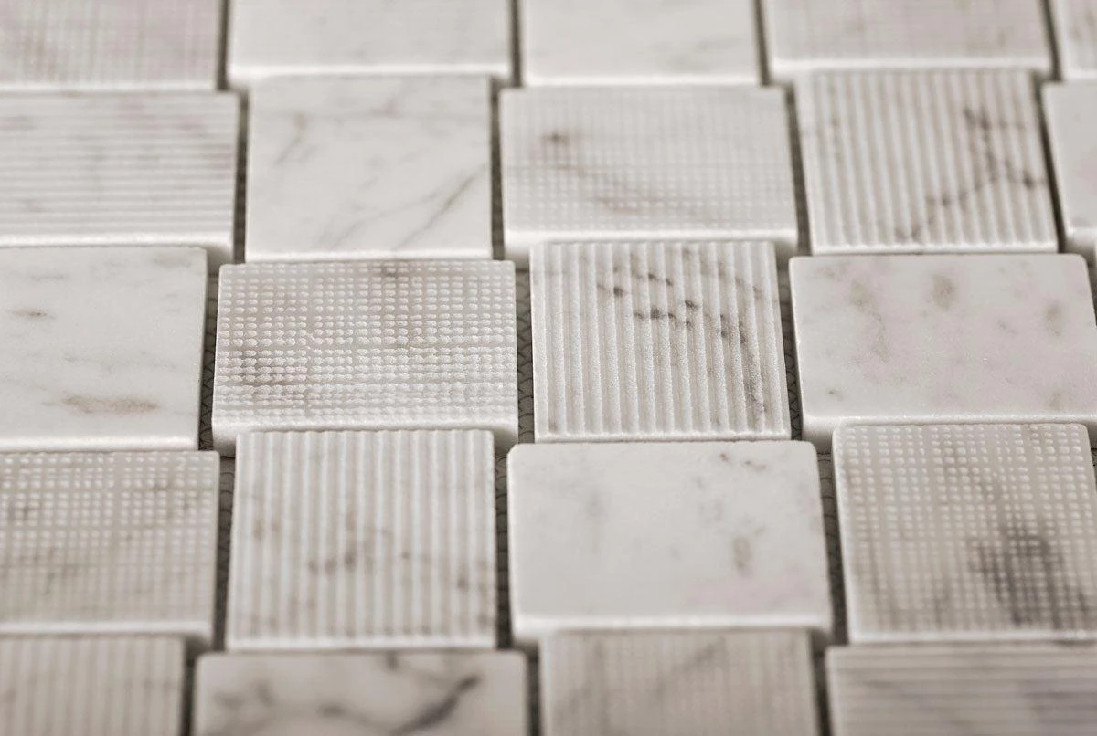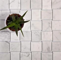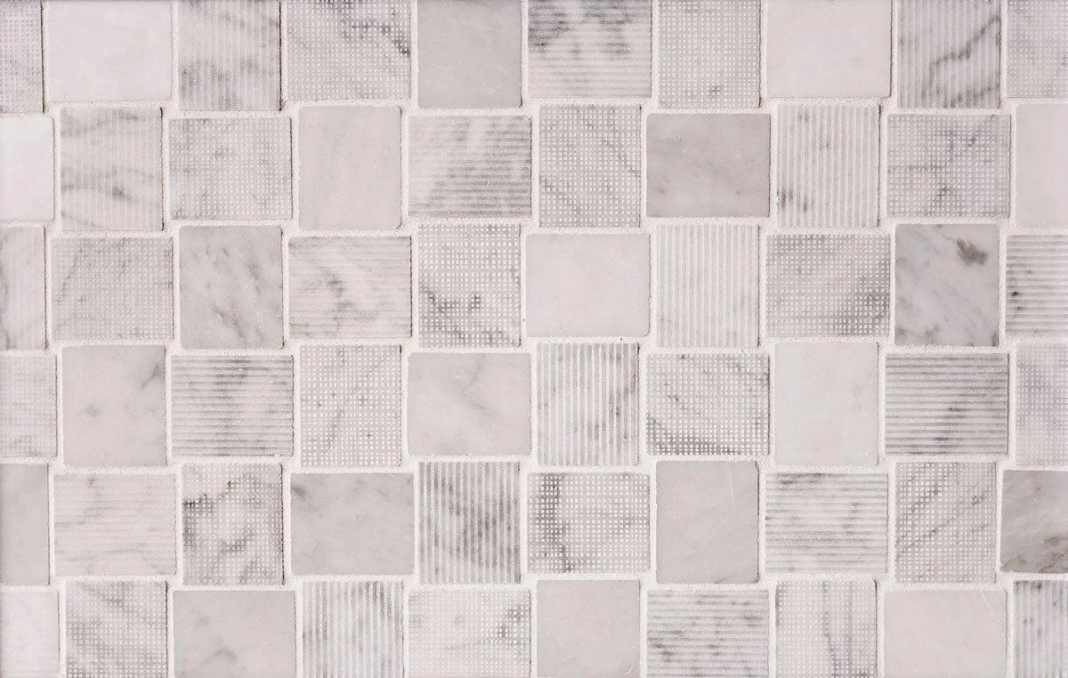 | Sold by: Sheet Sheet Size: 10.9″ x 10.9″ Chip Size: 1.6 x 1.9″/ 40 x 47 mm Width: 10.9″ Length: 10.9″ Thickness: 5/16″ Material: Bianco Carrara Color: Gray Finish: Polished, Etched Mounting type: Mesh Mounted Packing info: