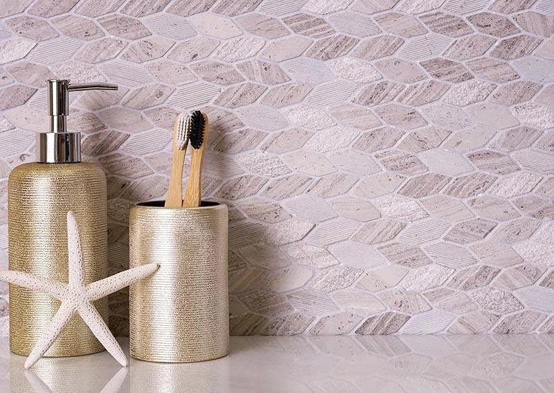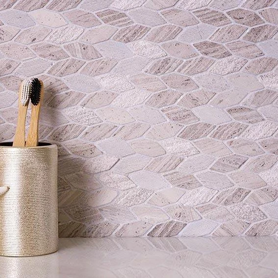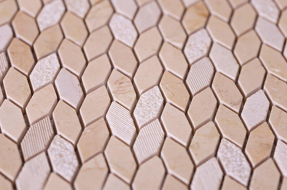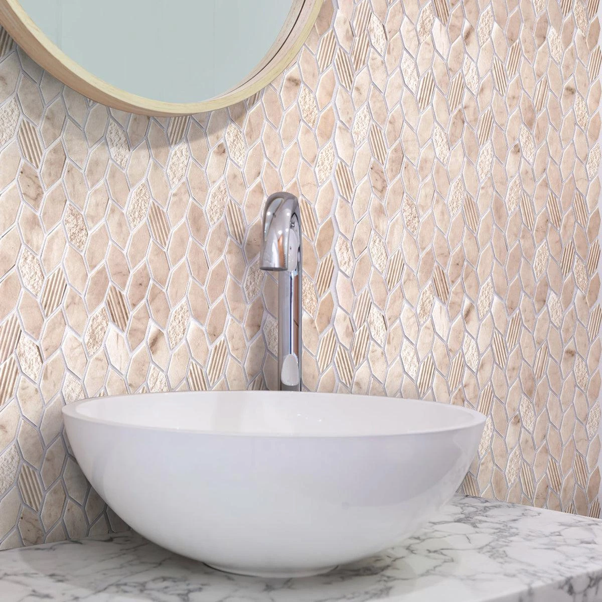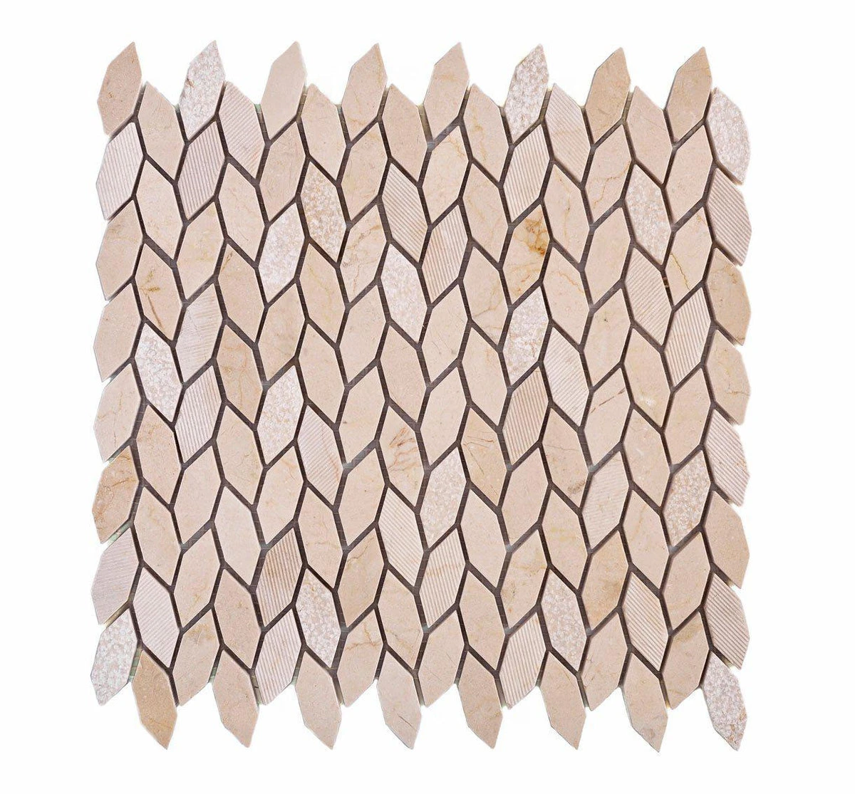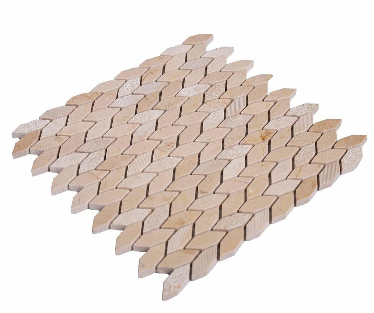 Introduce your home to a modern classic with our Textured Crema Marfil mosaic tile* in a unique leaf pattern. Delicately crafted from marble, this natural stone leaves tile brings the charm and comfort to traditional and contemporary designs. This pale beige tile with subtle veining is a great solution for warm and light color schemes. You can apply this product to a various range of spaces, including kitchen, dining room, bathroom, and even steam room. Durability and low maintenance of this material make it an ideal tile flooring for residential and commercial areas. This marble leaf mosaic tile is not afraid of direct sunlight and will be a great choice for your outdoor projects.