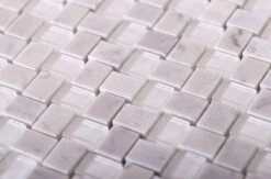 | Sold by: Sheet Sheet Size: 11.8″ x 11.8″ Chip Size: 0.8 x 1″/ 20 x 25 mm Width: 11.8″ Length: 11.8″ Thickness: 5/16″ Material: Bianco Carrara / Glass Color: Gray Finish: Polished, Etched Mounting type: Mesh Mounted Recommended Adhesive: Laticrete Glass Tile Adhesive Lite | Area of use: