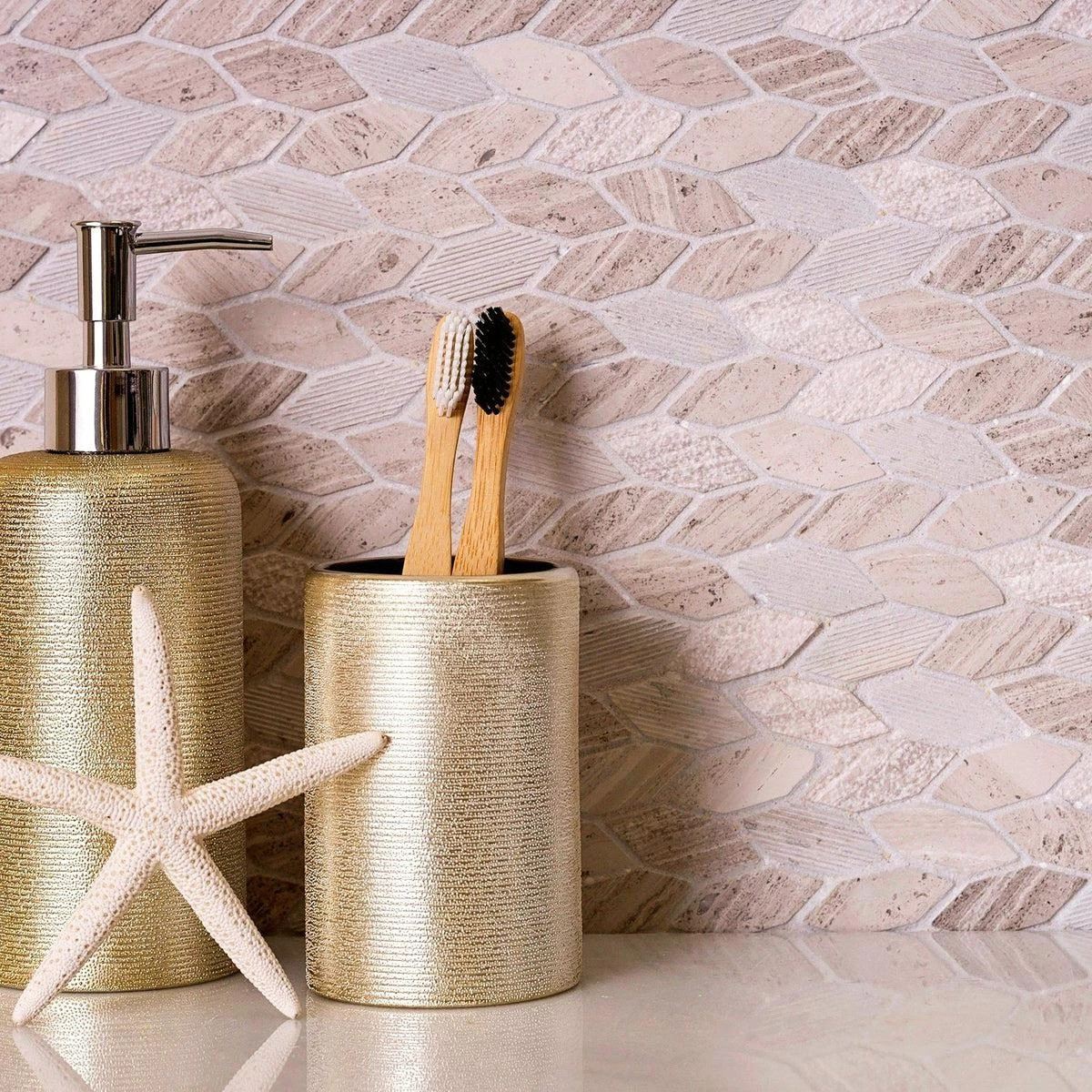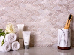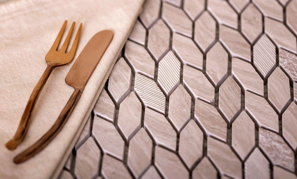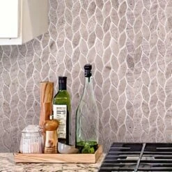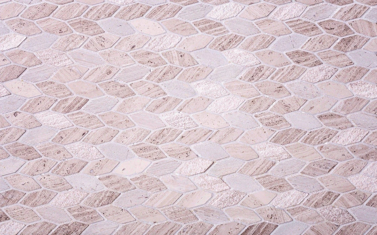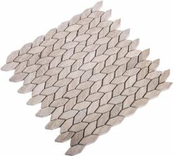 This textured wooden beige mosaic tile comes in an outstanding leaf pattern is created for those, who prefer contemporary designs with a fine touch of classic. Warm light gray and beige shade of this natural stone tile fits any color scheme and brings your home a discreet spacious look, while textured marble adds a visual and tactical appeal.
