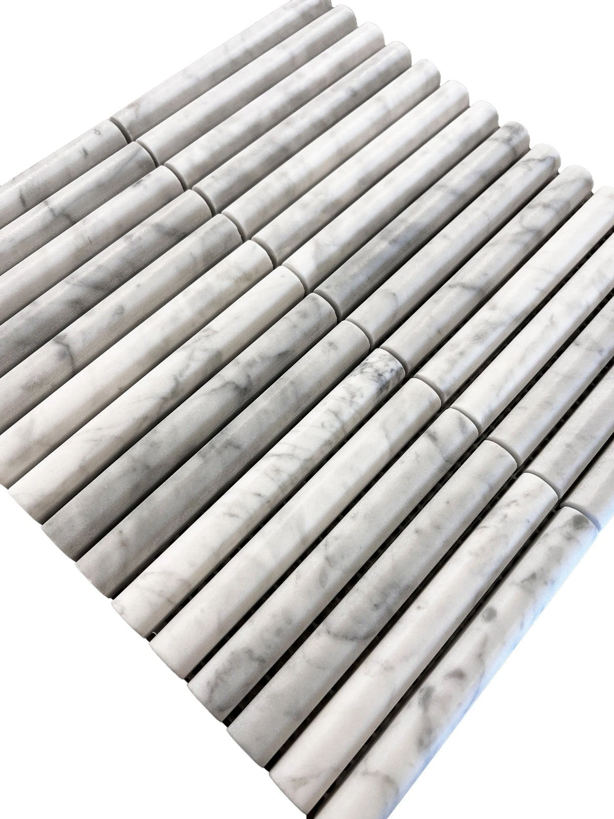 | Sold by: Sheet Sheet Size: 11 5/8″ x 11 5/8″ Chip Size: 7/8″ x 5 7/8″ Material: Bianco Carrara Color: White, Gray Finish: Honed Mounting type: Mesh Mounted | Area of use: