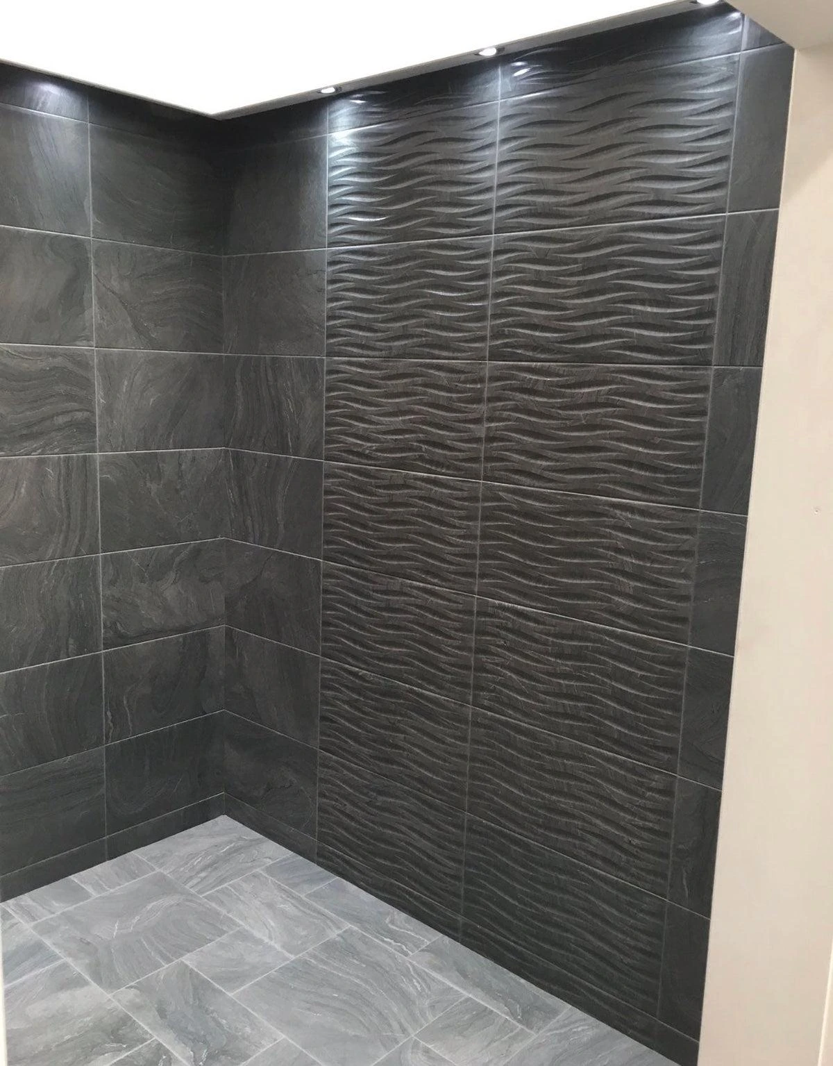 Bring a dramatic look to your interior design with our Varana Morengo Décor. This textured black porcelain tile creates a bright, mysterious feel and delivers an elegant touch to any residential or commercial setting. It is a great black porcelain floor tile for low foot traffic areas. This black textured background 3D tile is one of the popular wall tiles for general and shower wall applications. Create a unique textured black tile backsplash, a niche, or a feature wall. Revamp your home entrance, foyer, bathroom, or kitchen.