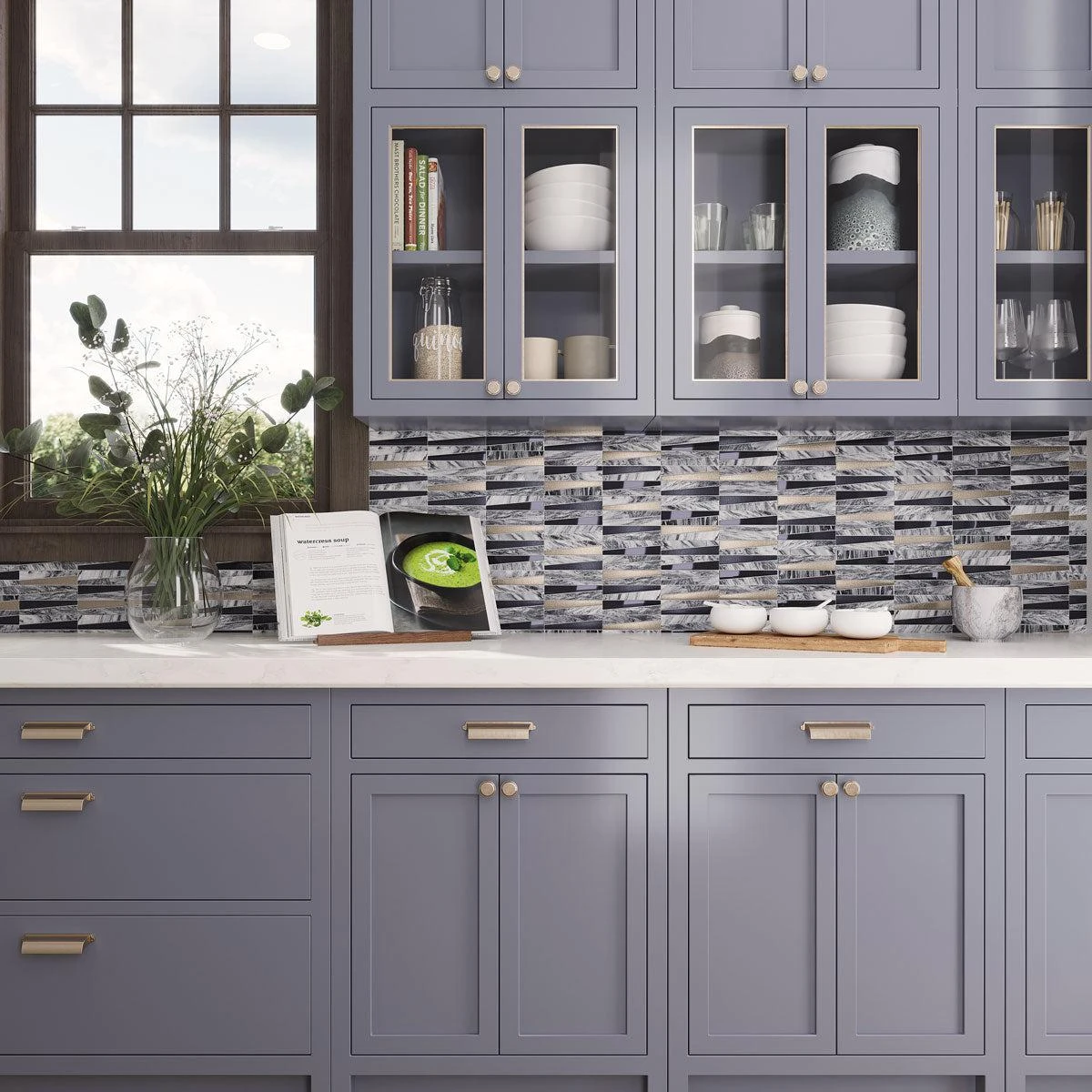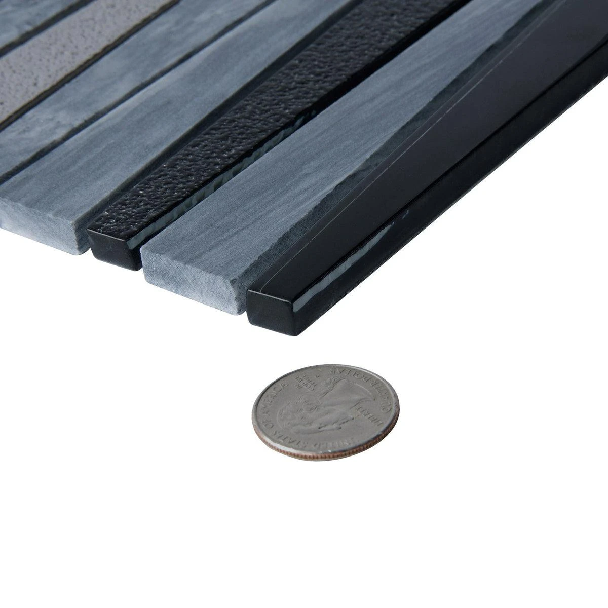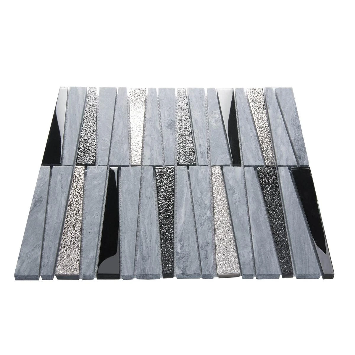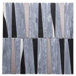 | Sold by: Sheet Sheet Size: 11.8″ x 11.8″ Width: 11.8 Length: 11.8 Chip Size: 5.8 x 0.9 x 0.4″ Thickness: 5/16” Material: Glass / Stone Color: Silver / Gray Finish: Polished, Textured Mounting type: Mesh Mounted Recommended Adhesive: Laticrete Glass Tile Adhesive Lite Packing info: