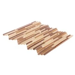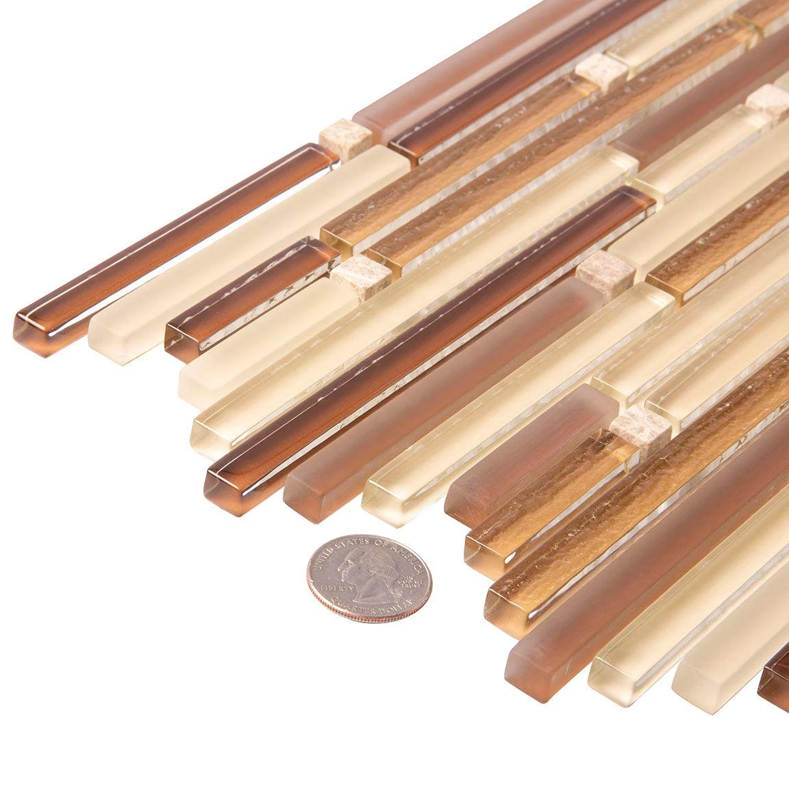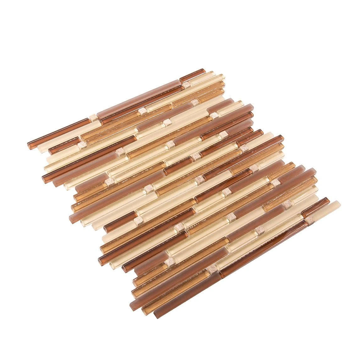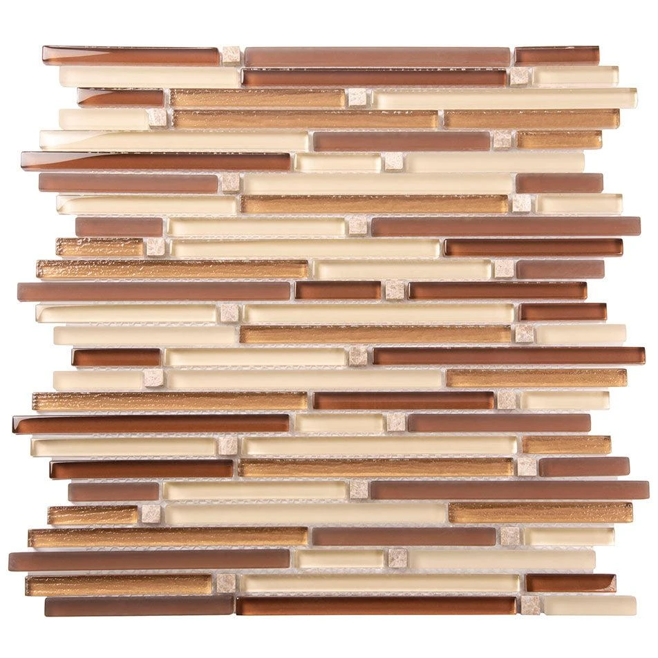 This waterfall bronze linear tile delivers a striking look to any residential or commercial revamp. A combination of white, beige, and bronze mosaic tiles color creates a bright natural look great for both indoor and outdoor projects. A waterfall tile design creates dynamics, great for areas that need more movement. This product is approved for light and heavy traffic floors. Use this rock glass mosaic tile for shower floors, walls, bathroom backsplashes, steam rooms, and kitchen applications.