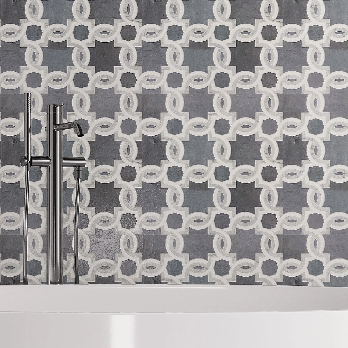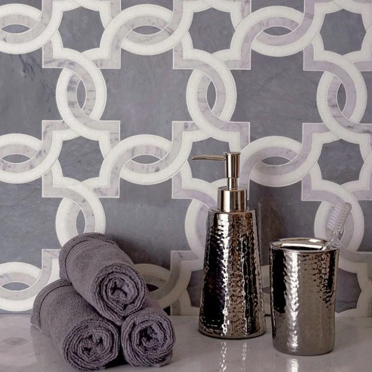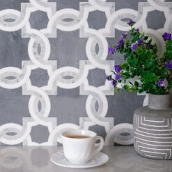 The captivating look of this waterjet tile can’t stay unnoticed. Bold whimsical lines of Thassos and Carrara marble draw a weaving flower tile pattern that is an undeniable visual attraction of any interior or exterior design. Neutral white and gray tile colors set up a calm, trendy look popular in contemporary designs. Shiny gloss mosaic finish adds a glamorous and luxurious feel. Each sheet is interlocked so you could have a fast, simple installation. Whether you want to use this product in your kitchen, dining room, bathroom, entrance, foyer, or patio, you can rely on the endurance of natural marble. The slip-resistance of mosaic tiles makes it safe for shower floors or wet areas. Decorate your home with a modern flower backsplash, outstanding natural marble flooring, walls, or any accent piece you want.