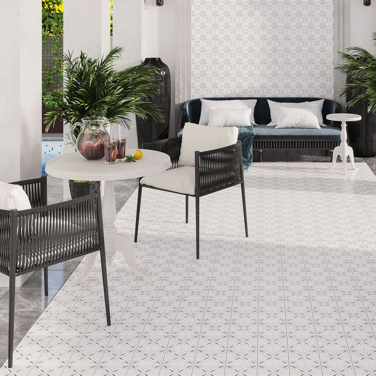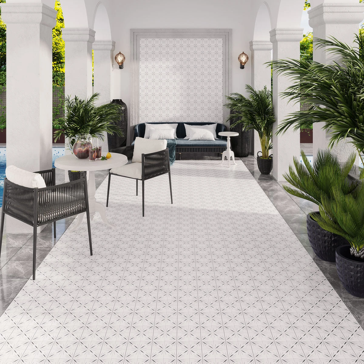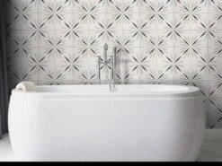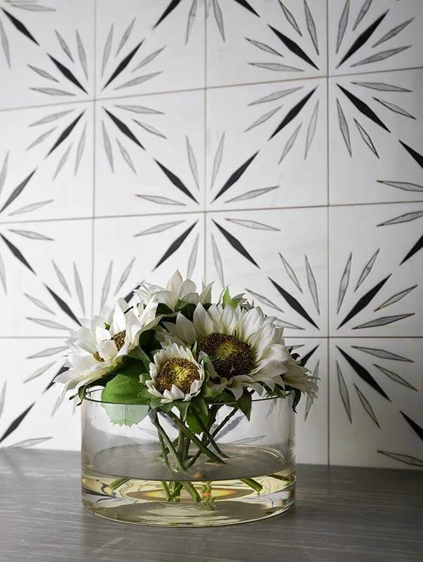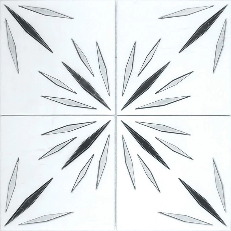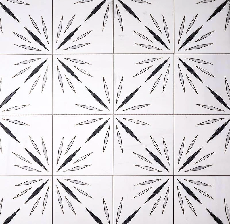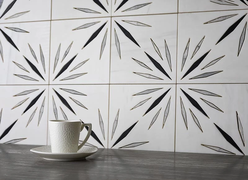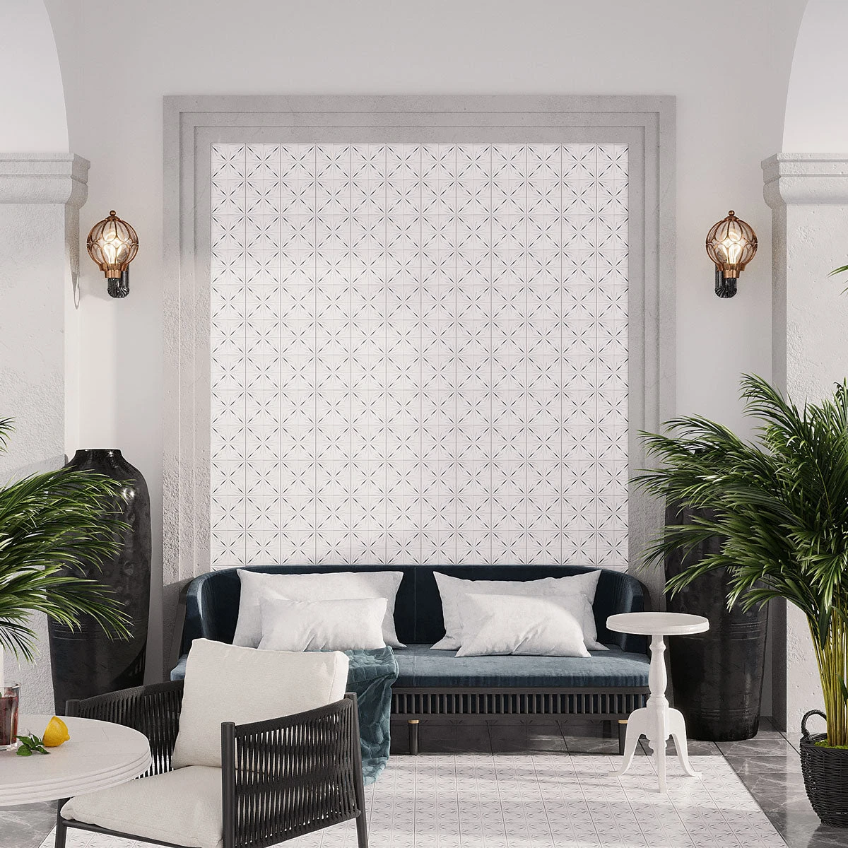 Elevate your home and add a sparkling finish with our dazzling White Sparkle Waterjet Marble geometric tiles. Exquisitely crafted from gray, black and white marble, this waterjet tile offers the sustainability and high quality of a natural stone along with the magnificent charm of the design. This eye-catching star tile offers an exquisite look and makes a great pick for any space! The continuous pattern on the 12×12” square tile makes installation quick and easy, and offers the look of stunning patterned encaustic tile with the quality and long life of marble. The simplicity of style and color turns our White Sparkle mosaic tiles into a perfect option for both residential and commercial projects. This polished marble tile is great for both indoor and outdoor applications. It is a popular choice for kitchen backsplashes, dining rooms, bathrooms, laundry rooms, and patios.
