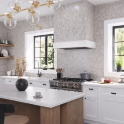 These diamond pattern tiles in Wooden Gray marble create an organic mosaic pattern with beautifully natural colors! Design the perfect diamond backsplash for a neutral farmhouse kitchen or accent the bathroom floor in a chic bathroom with these timeless diamond marble tiles!